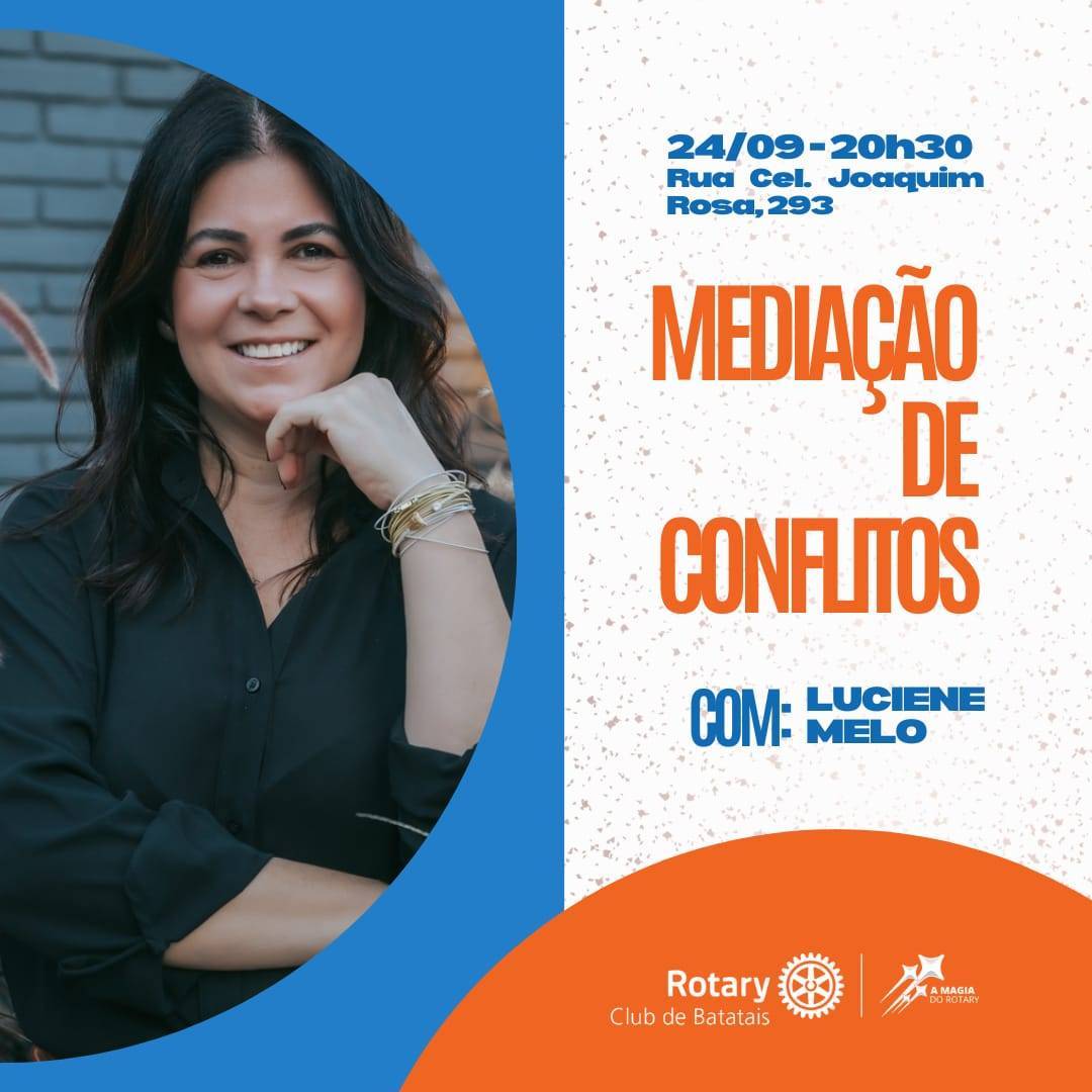 O Rotary Club de Batatais convidou para uma noite enriquecedora com a companheira Luciene Melo! No dia 24/09/24, às 20h30, na sede do clube, palestra especial sobre Mediação de Conflitos.